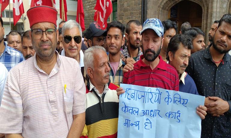 शिमला में रेहड़ी-फड़ी तहबाजारी यूनियन ने नगर निगम के खिलाफ हल्ला बोला। शहर के अलग-अलग हिस्सों से आए व्यापारियों ने नगर निगम आयुक्त कार्यालय के बाहर धरना देकर विरोधस्वरूप अपनी दुकानें सजा दीं। यूनियन का आरोप है कि निगम गैरकानूनी तरीके से व्यापारियों को परेशान कर रहा है और पंजीकरण के लिए आठ दस्तावेजों की मांग स्ट्रीट वेंडर्स एक्ट 2014 और सुप्रीम कोर्ट के आदेशों का उल्लंघन है। पढ़ें पूरी खबर-