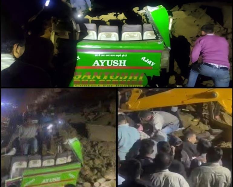 घटना की जानकारी मिलते ही स्थानीय प्रशासन और बचाव दल तुरंत मौके पर पहुंचे और राहत एवं बचाव कार्य में जुट गए। हादसे के समय बस में करीब 25 से 30 यात्री सवार थे। भूस्खलन के कारण क्षेत्र में आवागमन बाधित हो गया है, और प्रशासन ने स्थानीय लोगों से सतर्क रहने की अपील की है।