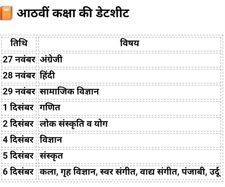 📢 महत्वपूर्ण सूचना: बोर्ड द्वारा जारी कार्यक्रम के अनुसार सभी स्कूलों को परीक्षाओं की निर्धारित तिथियों का पालन सुनिश्चित करना होगा। किसी भी विषय में बदलाव केवल विशेष परिस्थिति में ही संभव होगा।