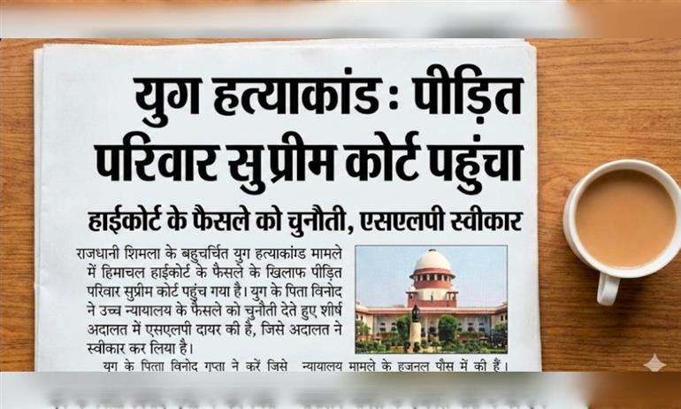 शिमला: (HD News); राजधानी शिमला को झकझोर कर रख देने वाले बहुचर्चित युग हत्याकांड में न्याय की लड़ाई अब देश की सर्वोच्च अदालत की चौखट तक पहुंच गई है। मासूम युग के पिता विनोद गुप्ता ने हिमाचल हाईकोर्ट के फैसले के खिलाफ सुप्रीम कोर्ट में विशेष अनुमति याचिका (SLP) दायर की है, जिसे शीर्ष अदालत ने सुनवाई के लिए स्वीकार कर लिया है। यह कदम पीड़ित परिवार के लिए उम्मीद की एक नई किरण है, जो हाईकोर्ट द्वारा आरोपियों को दी गई राहत से आहत था।