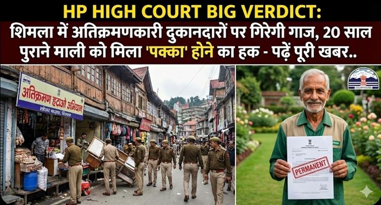 "हिमाचल प्रदेश उच्च न्यायालय ने न्यायपालिका की सख्ती और मानवीय संवेदना का एक अनूठा उदाहरण पेश किया है। कोर्ट ने दो अलग-अलग मगर ऐतिहासिक फैसलों में प्रशासन और सरकार को कड़ा संदेश दिया है। एक तरफ जहाँ शिमला के ऐतिहासिक लोअर बाजार को 'टिक-टिक करते टाइम बम' और अतिक्रमण का अड्डा बनाने वाले रसूखदार दुकानदारों पर कोर्ट का चाबुक चला है, वहीं दूसरी तरफ सिस्टम की बेरुखी झेल रहे एक माली को 20 साल बाद न्याय देकर हजारों अस्थायी कर्मचारियों की उम्मीदें जगा दी हैं। पढ़िए, हाईकोर्ट के वो दो फैसले जिन्होंने आज पूरे प्रदेश में हड़कंप और राहत दोनों का माहौल बना दिया है..."