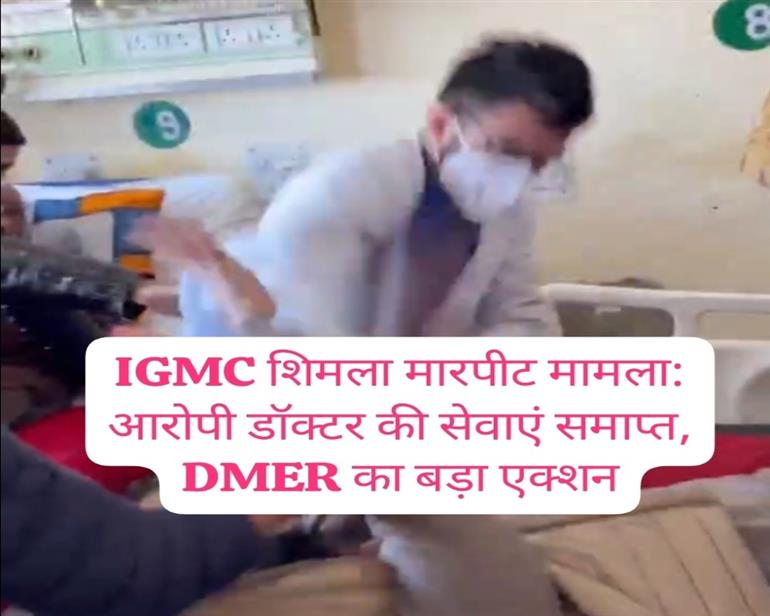 शिमला: इंदिरा गांधी मेडिकल कॉलेज एवं अस्पताल (IGMC) शिमला में मरीज के साथ हुई मारपीट के मामले में सरकार ने कड़ा कदम उठाते हुए आरोपी डॉक्टर डॉ. राघव निरुला की सेवाएं समाप्त कर दी हैं। यह आदेश चिकित्सा शिक्षा एवं अनुसंधान निदेशालय (DMER), हिमाचल प्रदेश द्वारा जारी किया गया है।