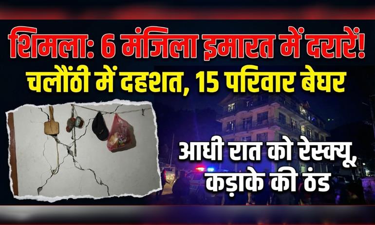 शिमला: (HD News); हिमाचल प्रदेश की राजधानी शिमला में विकास की कीमत एक बार फिर आम जनता को अपने आशियाने खोकर चुकानी पड़ रही है। भट्ठाकुफर की त्रासदी अभी लोग भूले भी नहीं थे कि अब चलौंठी में एक छह मंजिला रिहायशी इमारत पर 'मौत' का साया मंडराने लगा है। शुक्रवार देर रात करीब 10 बजे, जब पूरा शहर कड़ाके की ठंड में घरों में दुबका था, तब चलौंठी के एक भवन में अचानक गहरी दरारें पड़ने से हड़कंप मच गया। प्रशासन ने आनन-फानन में भवन को असुरक्षित घोषित कर खाली करवा दिया, जिसके चलते 15 परिवारों के मासूम बच्चे और बुजुर्ग शून्य डिग्री तापमान में सड़क पर रात बिताने को मजबूर हो गए।