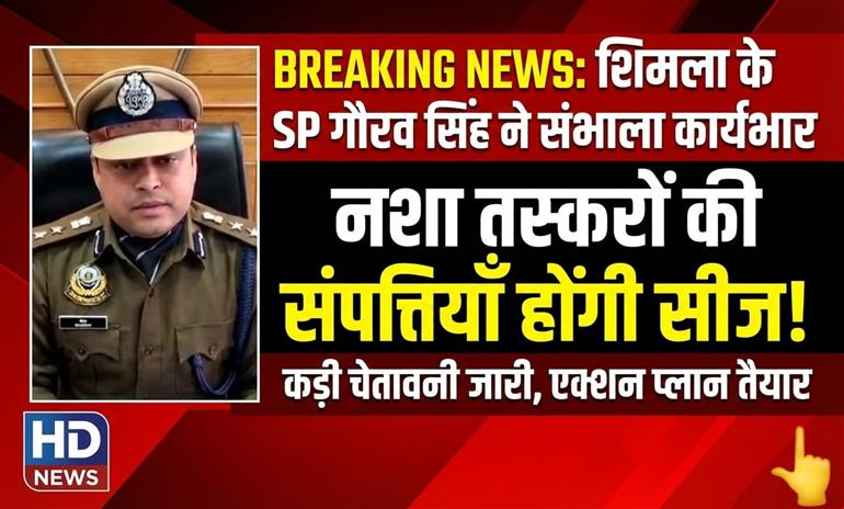 हिमाचल की राजधानी के नए पुलिस अधीक्षक (SP) के रूप में कार्यभार संभालते ही गौरव सिंह ने नशा माफियाओं के खिलाफ निर्णायक जंग का ऐलान कर दिया है। उन्होंने स्पष्ट किया कि अब पुलिस न केवल तस्करों को जेल भेजेगी, बल्कि नशे की कमाई से बनाई गई उनकी चल-अचल संपत्तियों को भी ज़ब्त (Seize) करेगी। पदभार संभालते ही उन्होंने अपनी प्राथमिकताओं में नशा मुक्ति, महिला सुरक्षा और सुचारू यातायात को सबसे ऊपर रखा है।