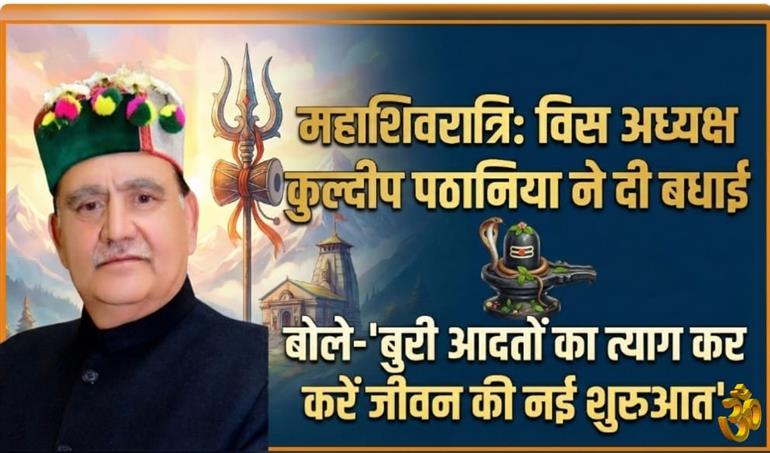 शिमला: (HD News); हिमाचल प्रदेश विधानसभा अध्यक्ष कुलदीप सिंह पठानिया ने समस्त देश और प्रदेशवासियों को महाशिवरात्रि के पावन अवसर पर हार्दिक बधाई एवं शुभकामनाएं दी हैं। इस ऐतिहासिक पर्व की पूर्व संध्या पर जारी अपने संदेश में उन्होंने इसे आस्था, भक्ति और 'देवभूमि' की समृद्ध परंपरा का प्रतीक बताया।