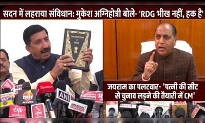 सदन में लहराया संविधान: मुकेश अग्निहोत्री बोले- 'RDG भीख नहीं, हक है', जयराम का पलटवार- 'पत्नी की सीट से चुनाव लड़ने की तैयारी में CM' - पढ़ें पूरी खबर..