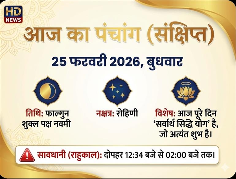 आज का पंचांग: 25 फरवरी 2026 (बुधवार)