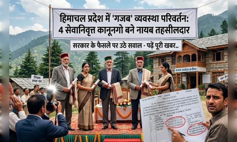 "हिमाचल प्रदेश में 'व्यवस्था परिवर्तन' के दावों के बीच एक ऐसी प्रशासनिक विसंगति सामने आई है, जिसने सेवा नियमों और सरकारी कार्यप्रणाली पर गंभीर सवाल खड़े कर दिए हैं। सुक्खू सरकार ने सोलन जिले के उन चार कानूनगो को प्रमोट कर 'नायब तहसीलदार' बना दिया है, जो करीब 9 महीने पहले ही अपना कार्यकाल पूरा कर रिटायर हो चुके हैं। हैरानी की बात यह है कि जो अधिकारी अब विभाग का हिस्सा ही नहीं हैं, उन्हें न केवल पदोन्नति का तोहफा दिया गया है, बल्कि उनकी नई पोस्टिंग के आदेश भी जारी करने की तैयारी है। आखिर रिटायरमेंट के बाद इस 'मेहरबानी' के पीछे का असली खेल क्या है और इससे प्रदेश के खजाने पर कितना बोझ पड़ेगा—पढ़ें यह विशेष रिपोर्ट।"