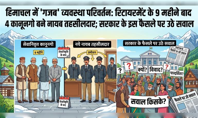 हिमाचल में 'गजब' व्यवस्था परिवर्तन: रिटायरमेंट के 9 महीने बाद 4 कानूनगो बने नायब तहसीलदार; सरकार के इस फैसले पर उठे सवाल - पढ़ें पूरी खबर..